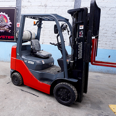 Montacargas Toyota Tipo cushion interiores Torre triple con dezplador lateralAltura 4.8 metrosGas LPImportadoMotor 4y